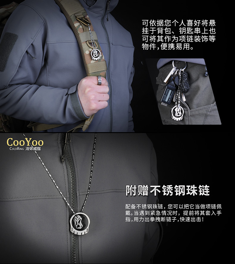 酷玩 酷友 CooYoo 冷环 ColdRing 钛合金戒指 镶嵌氚气灯 防卫求生 钥匙扣 冷环 2019年5月27日 商品介绍: 品牌: CooYoo 商品名称:酷友 CooYoo 冷环 ColdRing 钛合金戒指 镶嵌氚气灯 防卫求生 钥匙扣 冷环 PLUS 开瓶款-L商品编号:11234607201商品毛重:100.00g商品产地:中国大陆货号:CooYoo-ColdRing尺码:S,M,L分类:其它适用人群:男 购买地址