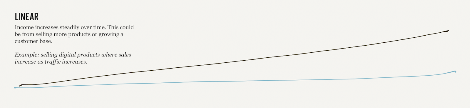 我在工作中看到的最常见的线性增长是在销售数字产品方面:随着流量的增加,销售额也在增加。这不是指数级的,因为流量仍然是瓶颈,但每篇新的文章或搜索引擎排名每月都会为网站带来几百人。随着时间的推移,这将推动更多的销售和收入增加。